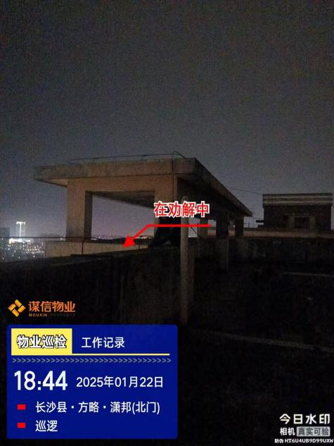 2025年1月21日18點(diǎn)35分左右,湖北領(lǐng)威保安公司湖南分公司駐方略瀟邦項(xiàng)目的隊(duì)長高云炳,在巡邏時(shí)接到了業(yè)主的通知,10棟2單元樓頂有一業(yè)主企圖跳樓輕生。