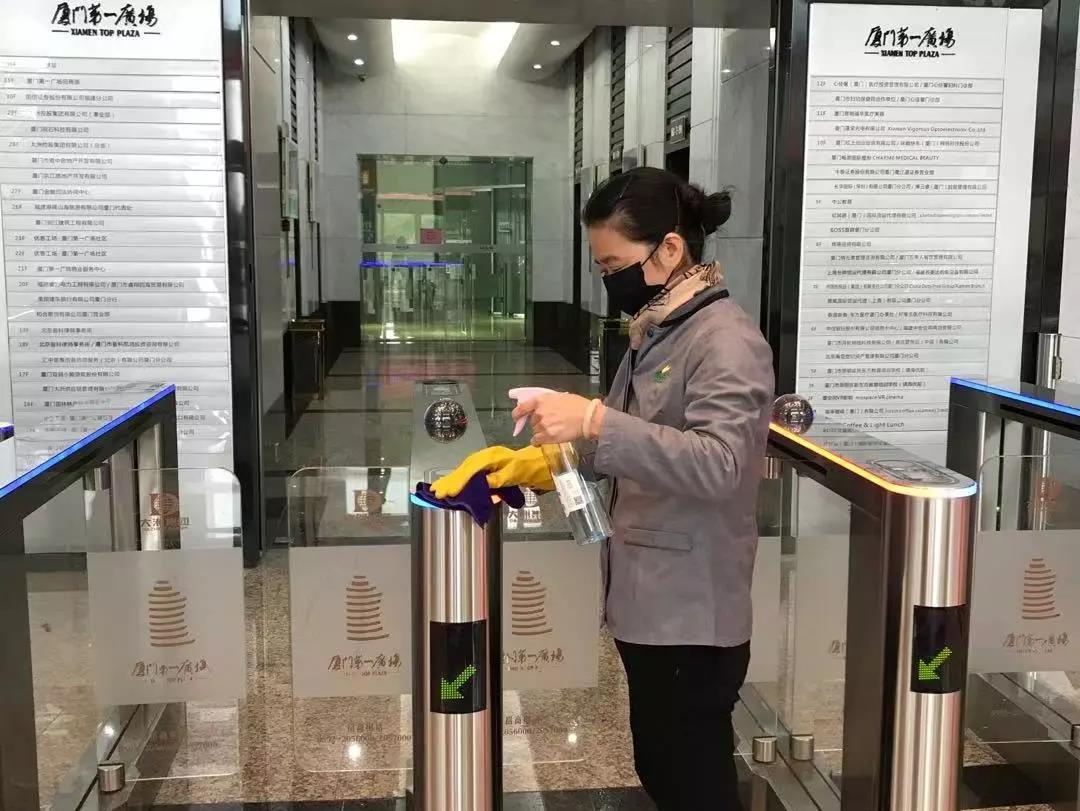 全天候24小時值崗,逐一為全體人員測量體溫,要求進出人員佩戴口罩,使用專業(yè)設(shè)備對每個角落消毒……這些已成為廈門第一廣場物業(yè)服務(wù)人員每日的例行工作。廈門第一廣場作為大洲集團旗下全海景5A甲級寫字樓,樓內(nèi)有近百家企業(yè)入駐,盡管不少復(fù)工企業(yè)紛紛采取輪班制度,通勤人數(shù)依然較多,為了最大程度確保廣大業(yè)戶的安全,廈門第一廣場根據(jù)集團下達的防控指令,從內(nèi)到外嚴抓疫情防控,每一處細節(jié)都不放過。在前期全面疫情阻擊基礎(chǔ)上,組織全體樓內(nèi)業(yè)戶共同行動,共克疫情。